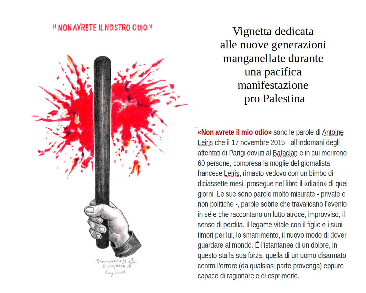 La violenza delle forze di polizia usata a Pisa, e anche in altre città, contro cittadini indifesi non è – come si è sentito dire – esagerata, o frutto di errori o di “difficoltà operative”: esagerare significa farsi prendere la mano, superare i limiti di un (pur) legittimo esercizio derivante dall’autorità che si incarna; “errori” o asserite “difficoltà operative” sono concetti inammissibili, privi di logica spiegazione a fronte di quanto è accaduto.