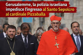 Il governo di Israele che impedisce di celebrare la messa della domenica della Passione del Signore al Santo sepolcro, e ferma per strada il patriarca latino di Gerusalemme e il custode di Terrasanta, compie l’ennesimo atto di arbitraria violenza. Ma si rimane senza fiato a leggere le parole di Giorgia Meloni, che si scaglia come mai aveva fatto finora contro il governo di Netanyahu, accusandolo di “un’offesa non solo per i credenti, ma per ogni comunità che riconosca la libertà religiosa”. E mentre Tajani convoca l’ambasciatore di Israele alla Farnesina, ed esprime lo “sdegno” (poi cambiato in “protesta”…) del governo italiano, l’altro vicepremier Salvini giudica “inaccettabile e offensivo” l’operato del governo di Tel Aviv.
