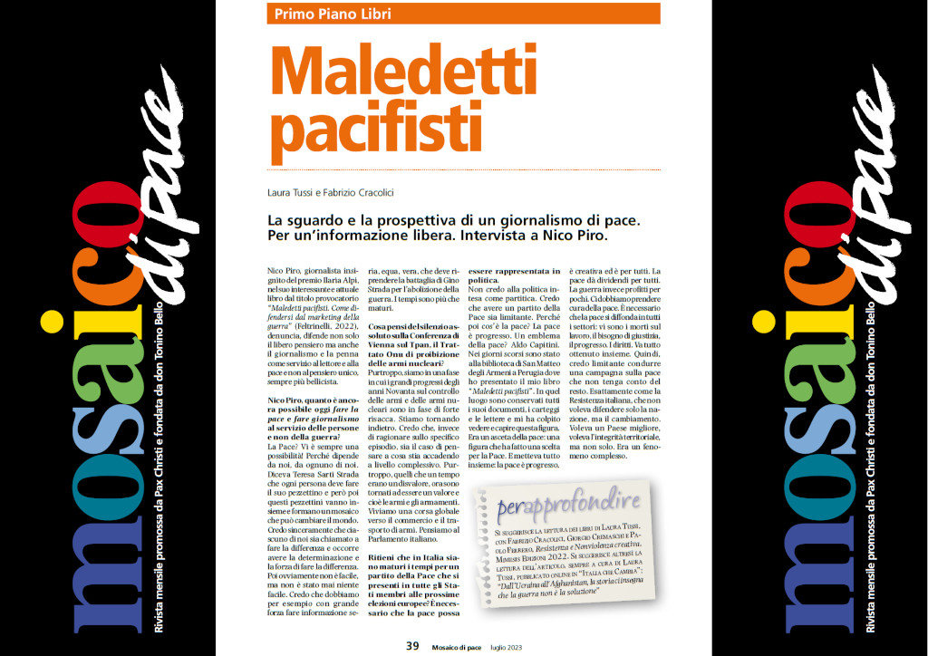 "Maledetti pacifisti" è il titolo dell'ultimo libro del giornalista e reporter di guerra Nico Piro. Un titolo provocatorio che vuole sottolineare come un'informazione equa, obiettiva e libera sulla guerra sia uno strumento di pace fondamentale per contrastare una deriva bellicista che oggi si sta espandendo non solo sul piano politico, ma anche su quello culturale.