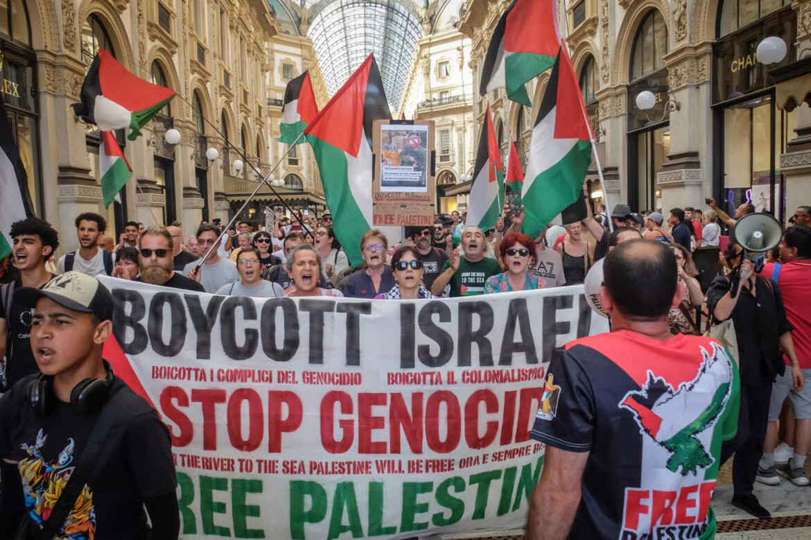 Manifestazione a Milano contro il genocidio a Gaza – Ansa/Matteo Corner
