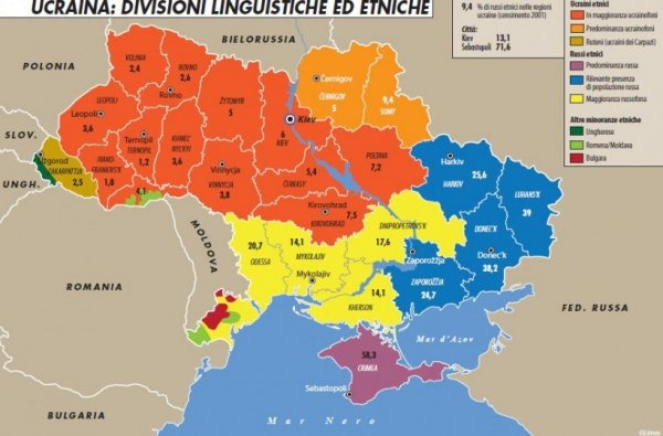 Ritengo di aver scritto molte volte che l'Ucraina non è uno Stato etnicamente unitario, oggi non lo è più nemmeno geograficamente data la situazione cogente. Il concetto sembra stia cominciando a passare anche in qualche scritto di analisti prestigiosi che finalmente si sono decisi a scrivere quello che era già noto da decenni a chi si occupava della questione ucraina già da molto tempo, fra i quali, consentitemi, il sottoscritto.