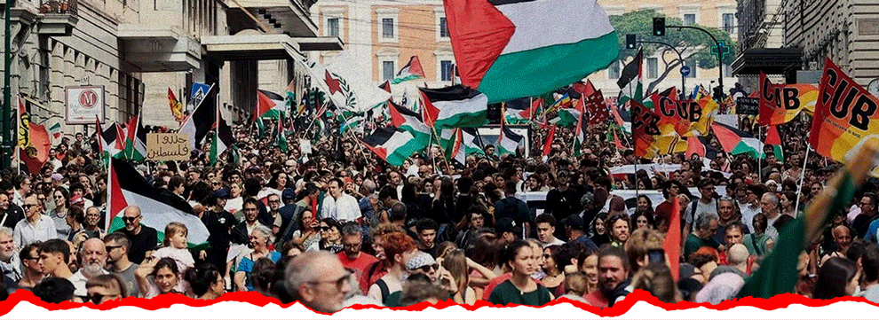 Era da moltissimo tempo che non si vedeva in strada un movimento di carattere internazionalista e in solidarietà a un popolo oppresso. A differenza del passato questa solidarietà si tinge fortemente di spinte umanitarie, ma riesce a intravedere anche le storture mondiali, economiche, sociali e politiche, che sorreggono l’oppressione e si interroga sui destini del mondo. Per questo, a rinforzare le piazze e le parole d’ordine sentite ovunque c’è anche il no alla guerra e in particolare il no al riarmo europeo e al militarismo trumpiano, che stanno caratterizzando le scelte e l’idea di società di un Occidente in crisi.