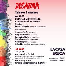 La IV edizione “La Casa Brucia. Come l’Occidente si sta autodistruggendo” è anche l’appuntamento in cui proviamo a fare un salto di qualità, non solo perché abbiamo voluto dedicare più giorni all’approfondimento dei temi, ma anche perché riteniamo necessario un confronto che ci aiuti finalmente a capire se e come possiamo aprire un confronto continuativo tra le realtà che dicono No alla guerra, che si vanno moltiplicando ogni giorno di più. Possiamo trovare un filo comune che potenzi le nostre voci? Possiamo costruire luoghi di condivisione e azioni che rafforzino il nostro NO?