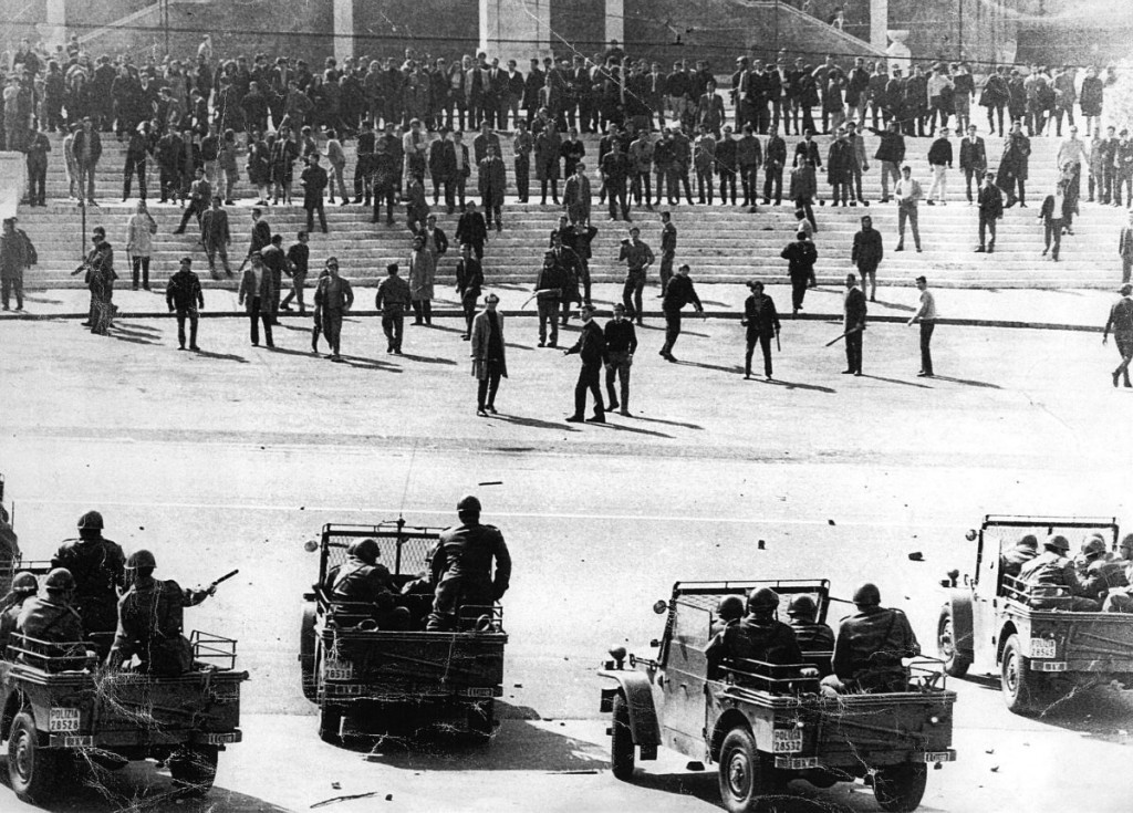 Quando ricordo quel giorno mi viene sempre ironicamente in mente Prete Liprando e il giudizio di Dio di Enzo Jannacci “…io non ho visto niente, non ho visto un accidente, son venuto da Como per niente…”. Eh sì, perché quel 1 marzo 1968, per un caso ero a Roma, alla riunione del Comitato centrale dei giovani universitari socialisti… veramente eravamo in un albergo a Ostia lido e la riunione stava appena cominciando, quando un giovane e affannato Francesco Tempestini venne a darci notizia degli scontri a Valle Giulia. Pieni di entusiasmo guidati dai compagni romani, prendemmo d’assalto sia la metro di superficie che vari pullman per arrivare a Valle Giulia, ma inutilmente: tutta la zona era blindata e noi non romani troppo poco informati per poter trovare strade alternative per raggiungere l’epicentro degli scontri. Tuttavia partecipammo a qualche episodio secondario, ma abbastanza emblematico per capire che era in atto un cambiamento epocale: bastava vedere i “pulotti”( così chiamavamo i poliziotti, forse dal termine gergale milanese pula, polizia) battere coi manganelli sugli scudi con un rumore cupo e violento che non avevamo mai sentito e che è impossibile dimenticare…