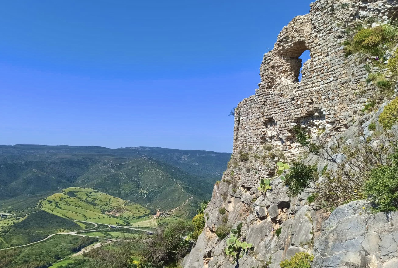 Salto di Quirra e rovine del castello, sullo sfondo il mare