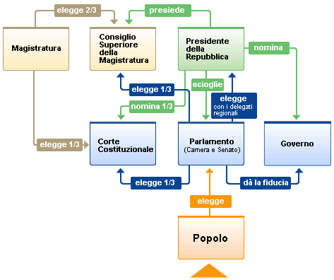 Come si vede in questo chiarissimo, quanto teorico, esempio è il Popolo che forma con la sua scelta il parlamento, ed a seguire come esso elabori, tramite appositi percorsi decisori, tutta la vita repubblicana.