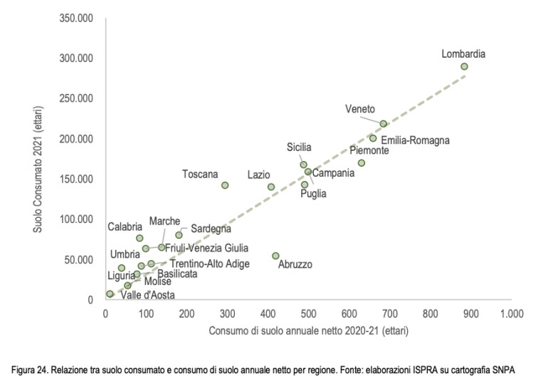 Capite fin dove arriva l’ipocrisia? Capite l’urgenza di svoltare pagina? Capite che abbiamo bisogno di politici e urbanisti che siano in grado di ipotizzare un futuro possibile senza consumare suolo, senza una transizione energetica mangiando aree agricole, senza immense colate di cemento per la logistica e le autostrade e così via. Capite che la lacuna è culturale? Capite che non abbiamo bisogno di ministri che girano la testa dall’altra parte o ministri che si occupano di alte velocità inutili o ponti impossibili davanti a un paese che affoga a ogni pioggia o di ministri che si permettono di dire che esistono consumi di suolo buoni, come è capitato durante la presentazione dell’ultimo rapporto nazionale? Qui non c’è nulla di buono. È un diritto di noi tutti avere un governo regionale e nazionale che tutela il suolo e la natura e ferma questo saccheggio continuo, questi “vandali in casa” come disse più di 50 anni fa Antonio Cederna, profeta inascoltato.