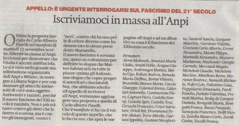 Di seguito l'appello del Manifesto a Iscriversi in massa all'ANPI". Per aderire all'appello inviare una mail a: