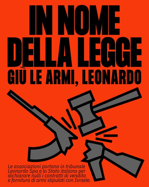 Con questo atto – un inedito che potrebbe costituire un importante precedente – si chiede che vengano dichiarati nulli i contratti stipulati da Leonardo Spa e sue controllate con lo Stato di Israele, relativamente alla vendita e alla fornitura di armi all’IDF, le forze armate dello Stato d’Israele. Israele, da decenni, è responsabile di gravi e sistematiche violazioni dei diritti umani, non solo a Gaza dove quanto compiuto è stato qualificato come genocidio dalla Corte Internazionale di Giustizia, ma in tutta la Cisgiordania e a Gerusalemme.