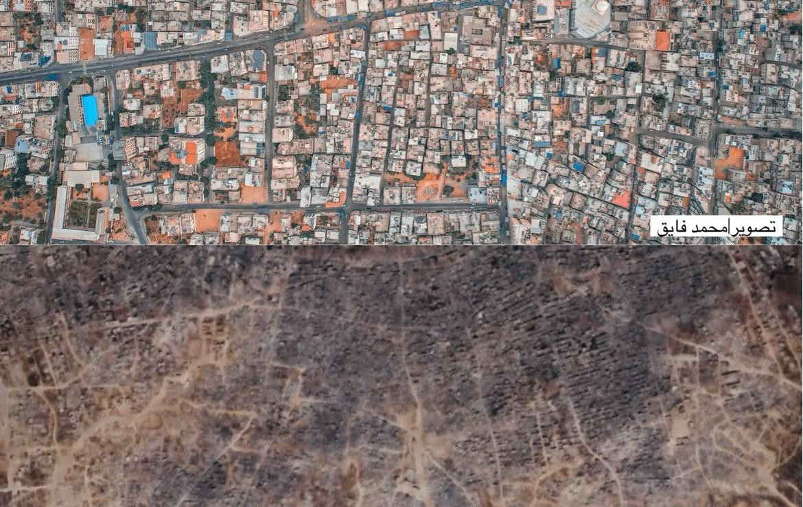 Quartiere di Gaza prima e dopo i bombardamenti israeliani. Foto di Mohammed Fayq