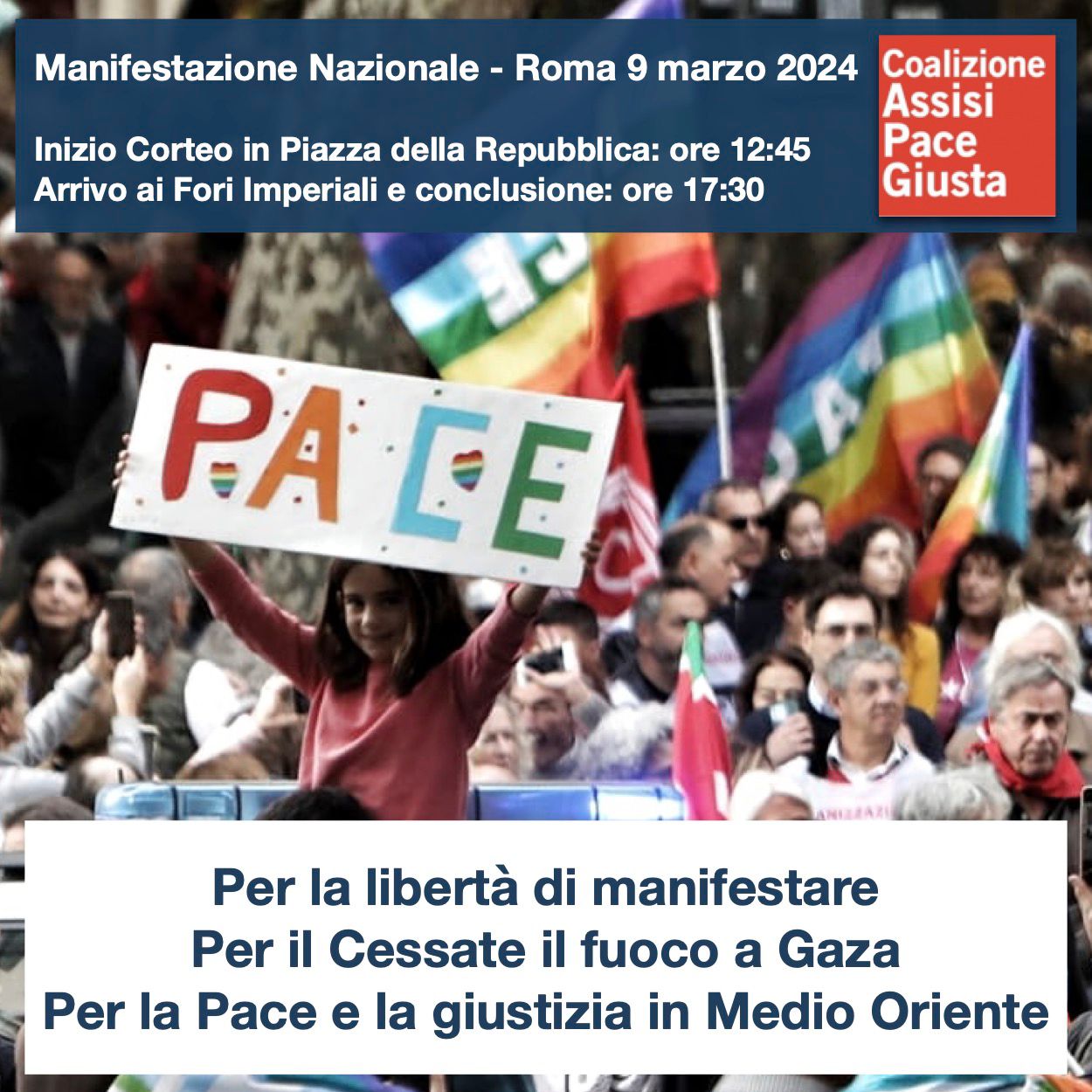 Nelle oltre 120 iniziative, che hanno visto una grande partecipazione, è stata ribadita la necessità di un cessate il fuoco immediato, a partire da Gaza e Ucraina, e la necessità che giungano aiuti umanitari il prima possibile alle popolazioni vittime di tutti i conflitti in corso nel mondo come in Siria, Yemen, Sudan, Myanmar etc.
