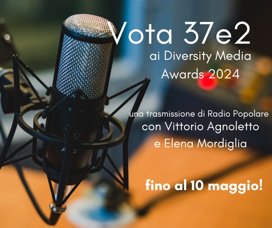 Siamo tra le sei trasmissioni in lizza come programma radio. Per vincere il premio la trasmissione ha bisogno dei vostri voti! Votate 37e2, rilanciatela ai vostri amici e amiche. Chiunque può votare, e lo può fare fino al 10 maggio sul sito degli Award e con questo pulsante: