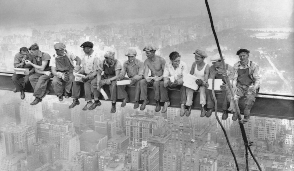 Questa fotografia è famosissima: si intitola Lunch atop a Skyscraper, cioè pranzo in cima a un grattacielo, ed è del fotografo americano Charles Clay Ebbets, che la scattò il 2 settembre del 1932, in piena Grande Depressione, nel cantiere del Rockefeller Center di New York.