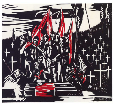 Foiso Fois- Il funerale del compagno, 1955, xilografia