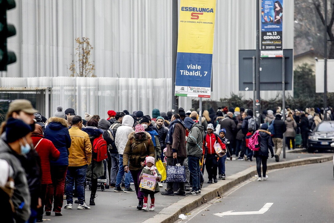 file davanti alla Caritas di Milano