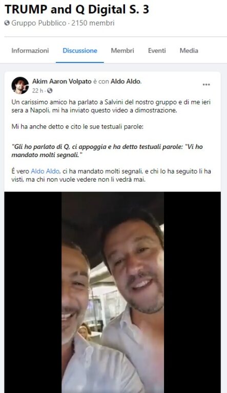 E questi nuovi adepti, questi seguaci di QAnon, indovinate a chi si sono rivolti nel nostro infelice Paese? Allego qui una testimonianza trovata su internet.
