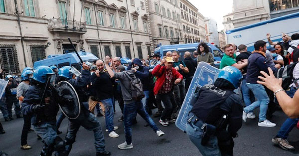 Mentre ieri sera finivo di scrivere questo pezzo, una edizione speciale del TG mostrava le immagini di una guerriglia urbana a Roma, che aveva come slogan di facciata “No green pass”, ma di fatto dietro c’era e c’è una prova tecnica di sovversione, ideata dalla destra squadrista di Forza Nuova. Se no perché attaccare e distruggere la sede della CGIL? Che c’entra col “green pass”? E poi che dire dell’attacco vigliacco di questa notte al Pronto Soccorso dell’Ospedale Umberto I, da parte di un manipolo di una trentina di fascisti che si son fatti largo sfasciando tutto e picchiando il personale paramedico, chiamati da un manifestante ferito che si trovava al Pronto Soccorso e che dopo aver dato segni di intolleranza e di violenza ha chiamato i suoi amici a dargli manforte. Perché, che senso ha? Questi inqualificabili imbecilli subumani, oltre a picchiare il personale, hanno impedito per ore di utilizzare il pronto soccorso per le emergenze, e sono solo dei delinquenti che vanno puniti con fermezza. Infatti il punto è proprio questo: che in questo paese nessuno paga mai per quello che fa. E chissà perché chi non paga mai è sempre di destra? Per esempio: cosa ci fa in giro per Roma uno come Roberto Fiore, fondatore di Forza Nuova, col suo pedigree fascista doc?