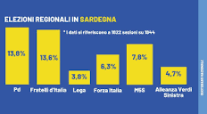 Intanto il partito del PD è il primo partito della Sardegna, con quasi il 14%