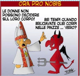 Sembrano cose irreali, non vere, inventate da qualche mente pervertita e davanti a questi abissi di sadico orrore, ci chiediamo ancora una volta: ma perché?? Perché tutto questo odio contro le donne, perché questa furia, questa rabbia, questo rancore? E forse possiamo rispondere alla domanda: c’è una radice comune? Sì che c’è, perché – riflettendoci bene – tutto questo odio è legato alla religione e al sesso. Cosa accomuna cristiani, musulmani ed ebrei in questa avversione: è forse un caso che sia noi cristiani che i musulmani e gli ebrei abbiamo come riferimento comune “il Libro” cioè la Bibbia? No, non è un caso: nella Bibbia Dio crea l’uomo dalla creta e poi gli soffia in viso la vita e l’anima. La donna invece la crea con una sua costola: dunque è carne sua, cosa sua, gli appartiene. E poi c’era la storiella del Paradiso terrestre perduto, insieme all’immortalità, per colpa di Eva, di una mela e di un serpente tentatore Un bel alibi per il maschilismo più bieco, una scusa miserabile e assurda per penalizzare la donna. La religione che fa da scusa, che offre giustificazioni insensate alla repressione di un intero genere!