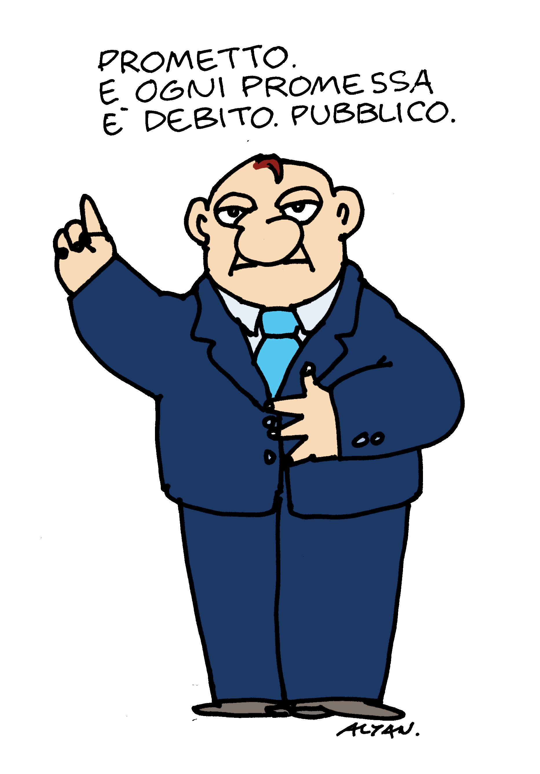 La valutazione del debito che ne determina il rischio ( elemento base per il calcolo di interessi e di attrattività per l’acquisto ) si attua, in logica finanziaria elementare, con un sistema di misurazione che incrocia due vettori. Immaginiamo due braccia accostate ad L . Una, la verticale, misura il debito pubblico del Paese in oggetto, l’altra orizzontale misura il debito privato e delle famiglie. La superficie che deriva dall’incrocio delle due assi cartesiane si chiama debito totale. Cioè il vero debito. Se leggiamo compiutamente i dati esistenti, peraltro forniti dalla Banca Centrale Europea, scopriremmo alcune cose singolari. Per esempio che il Paese più indebitato nel privato ( imprese banche e famiglia ) è la “virtuosa” e schizzinosa Olanda con il 273,9 % del Pil , il meno inguaiato la Germania con il 109 ( del resto in tedesco debito si dice schuld che si usa anche per dire colpa .. paese luterano! ) . E noi? Mettendo insieme debito banche, imprese, privati, famiglie siamo al 110% scarso . In ordine di grandezza il penultimo debito. Incrociando le due assi e misurandone la superficie prodotta possiamo quindi dire che siamo messi assai bene. Se poi utilizzassimo solo il parametro del debito familiare ..beh saremmo i più virtuosi. I francesi, che danno sempre lezioni a tutti, sono i messi peggio. Il debito totale dei cugini d’Oltralpe è il 400% del Pil. Insomma loro sono con le pezze al culo e noi coi pantaloni di Armani. Fattuale.